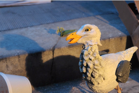 DONE IN THE STYLE OF AARDMAN ANIMATION'S 'CREATURE COMFORTS', THE DIRECTOR INTERVIEWED NEW YORKERS ABOUT LIFE & EVERYTHING IN BETWEEN TO PROVIDE VOICE-OVERS FOR THE ANIMAL STARS. I MADE THE SEAGULL PUPPET WITH BEAK REPLACEMENTS THAT MAGNETICALLY SNAPPED IN.